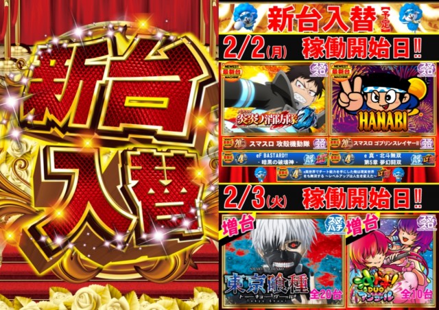 2月2日(月)☆最新台稼働開始☆この後も是非ご来店下さい