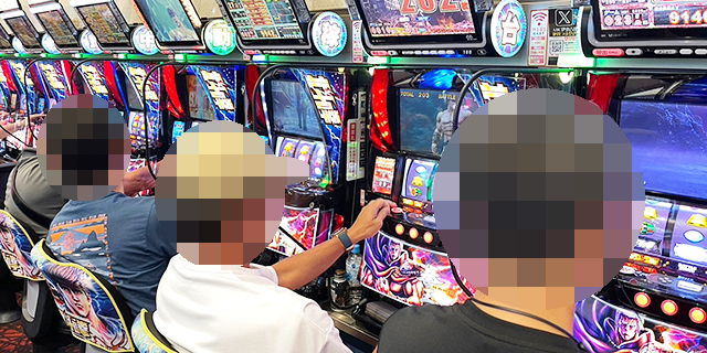 初開催の高揚感に包まれる店内。多くのプレイヤーが駆けつけたスロットコーナーは各シマ大盛り上がりとなっていた。活躍した機種たちの盛況ぶりをその目に焼き付けてほしい!