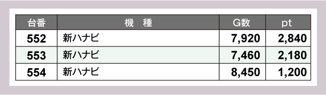 さらに『新ハナビ』では3台すべてがプラス差枚と活況の様子。平均2,000pt超えとハイパフォーマンスを披露していた。