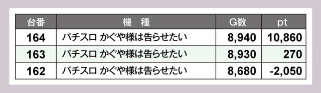 さらに『パチスロ かぐや様は告らせたい』からも1万ptオーバーを確認。そのほか『L 犬夜叉2』や『スマスロモンキーターンV』も大盛り上がりで、+8,000ptや+7,000ptといったポテンシャルを最大限に発揮する台が複数見られた。