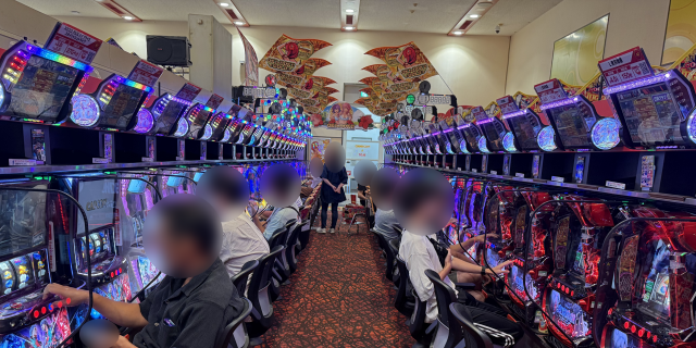 今回のPICK UP機種は全3機種。ハイスコアを記録した『パチスロ かぐや様は告らせたい』と『スマスロスーパーブラックジャック』以外に『スマスロ モンスターハンターライズ』からも多数の好調台を確認。設置されている4台全てがプラス差枚となっているだけに、3機種のシマは常に活気とファンの笑顔に満ち溢れていた。