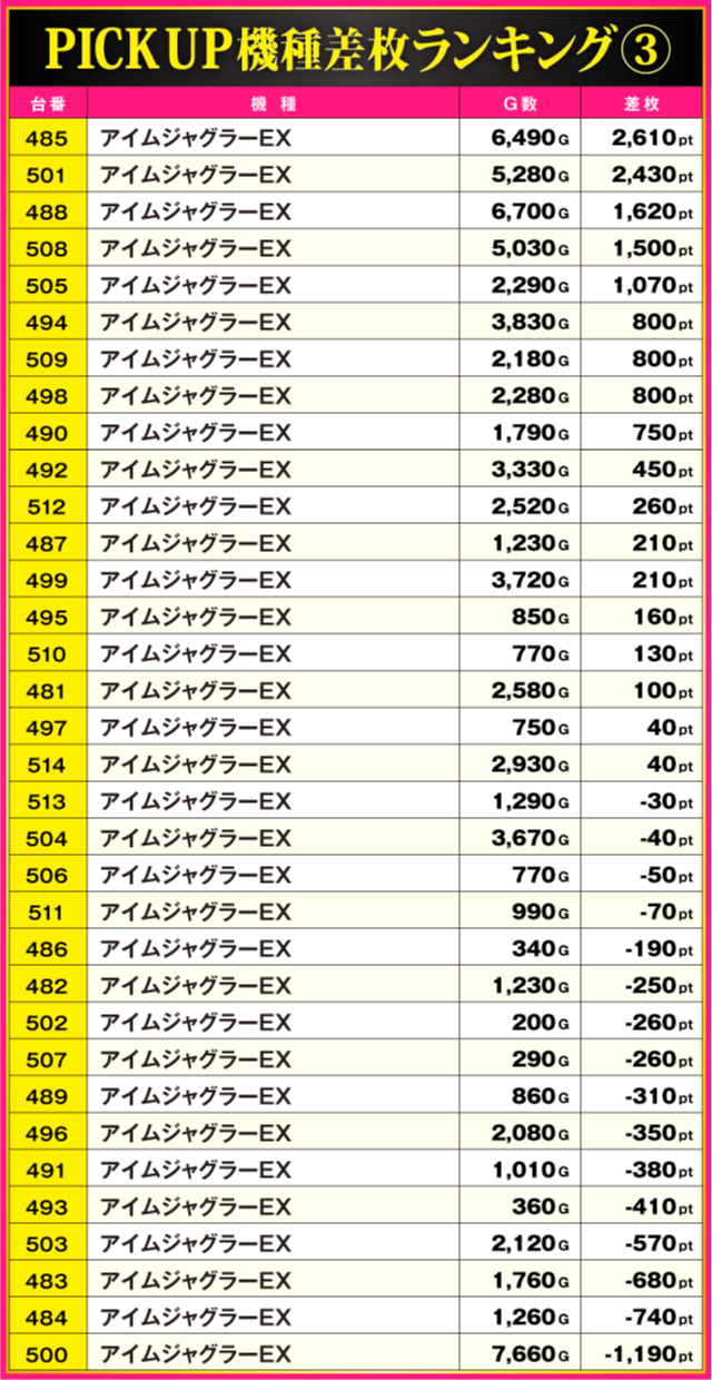 ※差枚pt順に掲載しています。