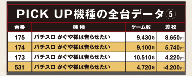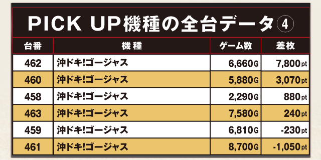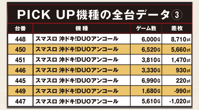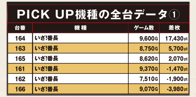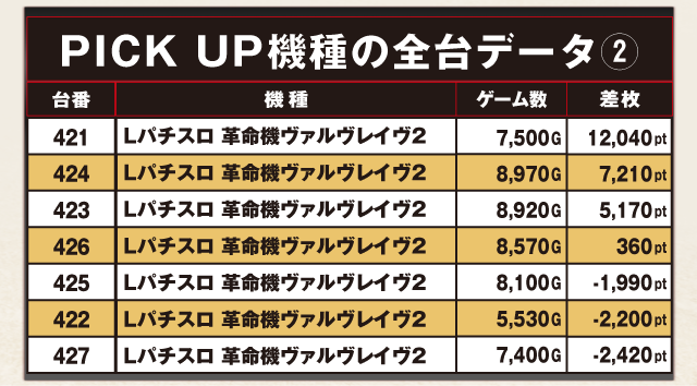 PiCK UP機種の全台データ