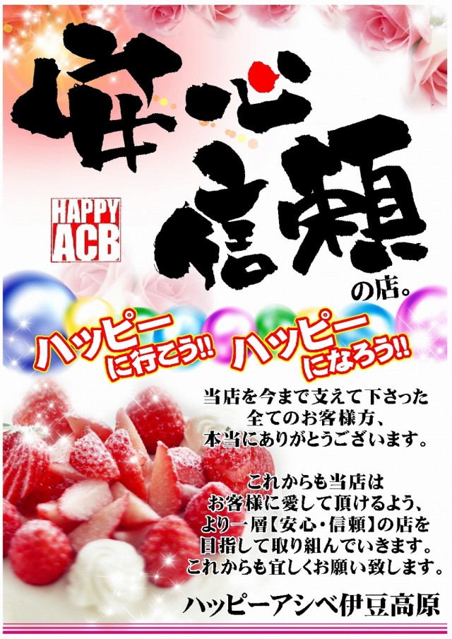 安心信頼の店!ハッピーに行こう!ハッピーになろう!