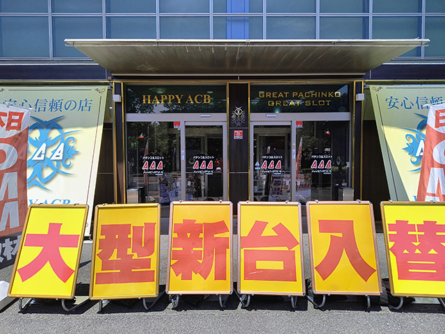 7月23日、静岡県伊東市にある「ハッピーアシベ」へと向かった。今回の取材は、「アルティメットスロット」だ。パチスロをみると、最新機種から定番のシリーズ機まで、さまざまな機種に活躍をしている姿があった。