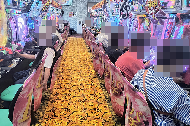 取材時は満席となっており、出玉が3,000ptを超えている台があった。