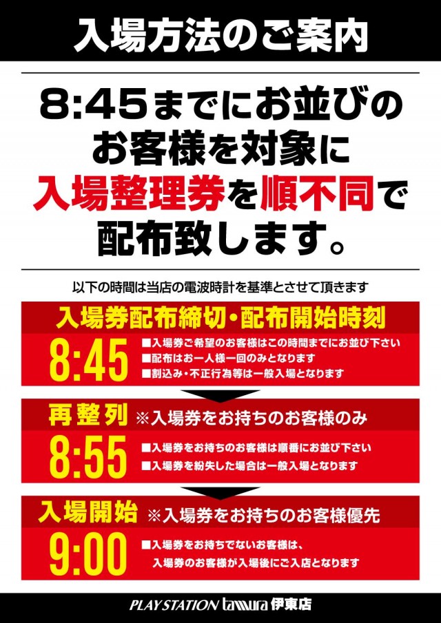 プレイステーションタムラ伊東店のお知らせ一覧