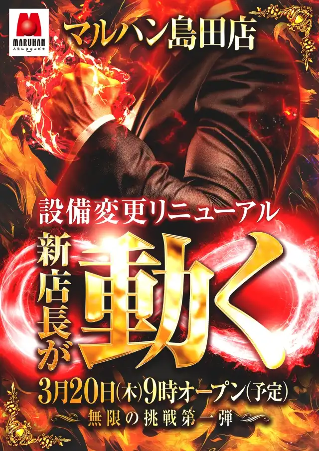 【マルハン島田店】3/20設備変更リニューアル9時オープン