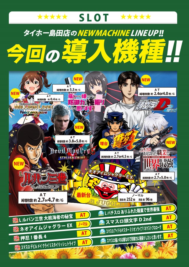 タイホー島田!26日(日) 新台入替!日曜島田全力営業!!