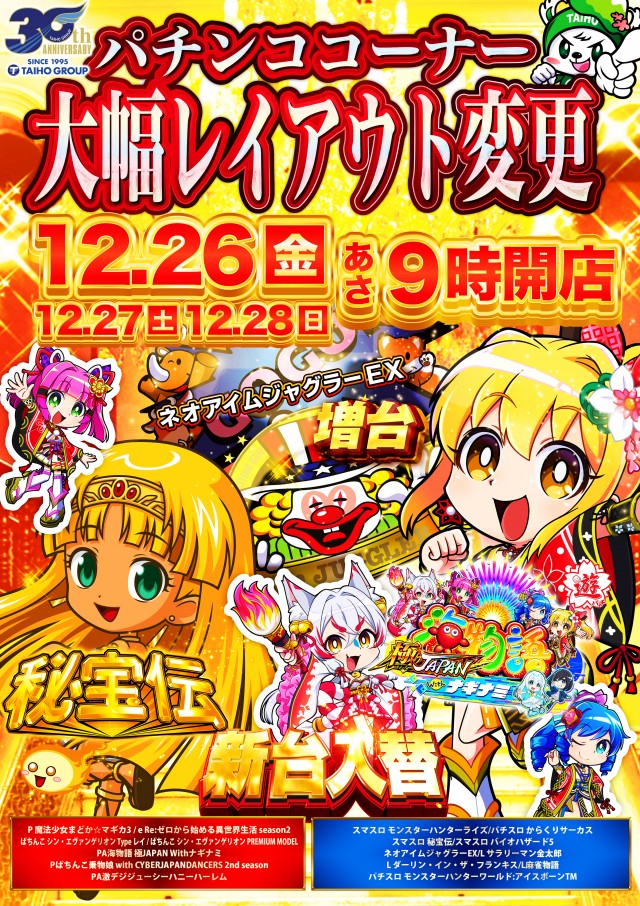 タイホー島田!26日(金) 新台入替初日!!全力営業!!!