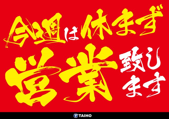 年中無休(店舗改修・設備変更等での休みの場合は事前に店内告知致します) |