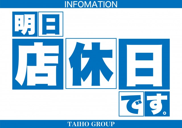 タイホー島田!20日(木) 店休日のご案内♪♪♪
