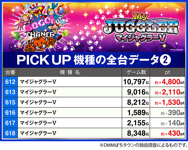 「マイジャグラーⅤ」の612番台が約+4,800pt!!