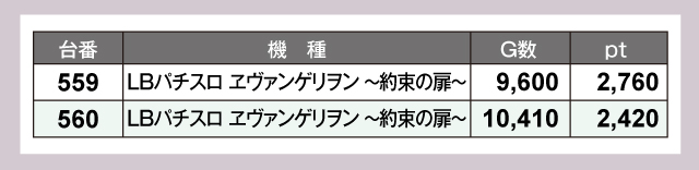 『いざ!番長』と『LBパチスロ ヱヴァンゲリヲン ~約束の扉~』は少台数ながらも全台がプラスpt。とくに『LBパチスロ ヱヴァンゲリヲン ~約束の扉~』は非常に高稼働で、プレイヤーからの人気を証明していた。