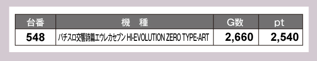 1台のみ設置の『パチスロ交響詩篇エウレカセブン HI-EVOLUTION ZERO TYPE-ART』は優秀な成績をおさめ、存在感をアピールしていた。