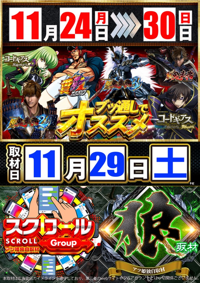 11月30日(日)★今月も皆様のご愛顧に感謝★