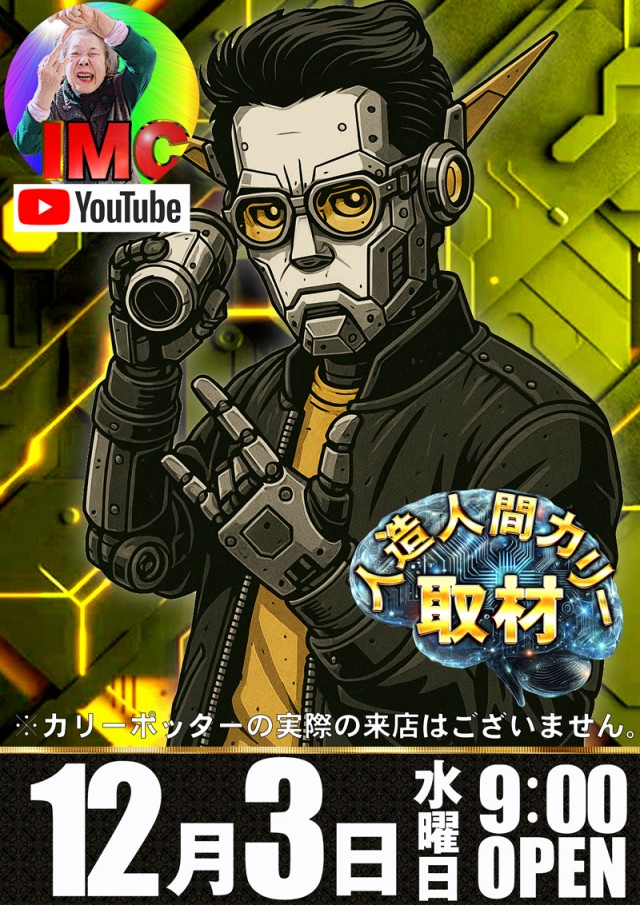 本日12月3日(水)ミナサマ、ゼヒ、キテネ♪