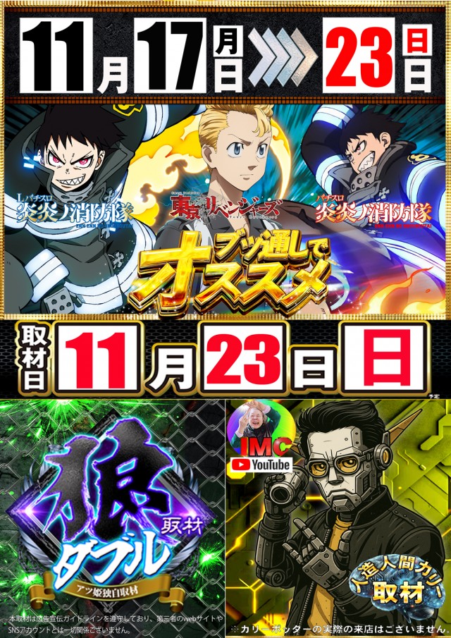 本日11月23日(日)ミナサマ、ゼヒ、キテネ♪