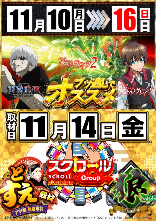 本日11月13日(木)ミナサマ、ゼヒ、キテネ♪