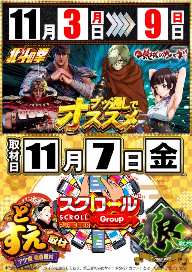本日11月9日(日)週末も六合店で楽しみましょう(^^)♪
