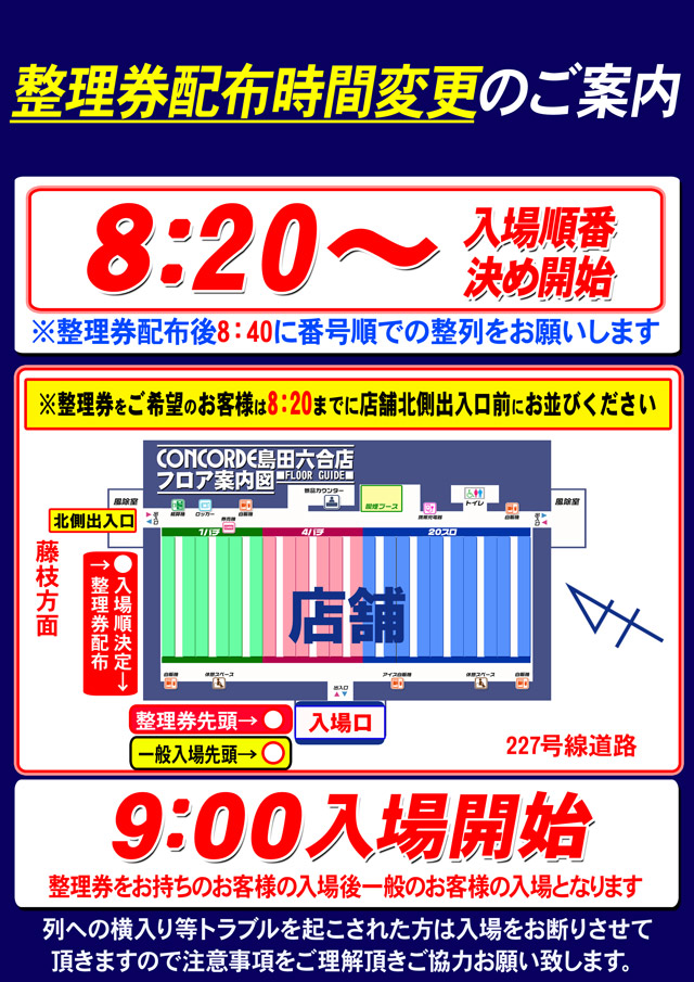 本日6月6日(金)このあと8:20より入場整理券配布!!