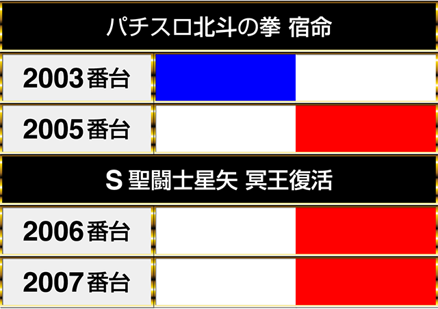 『パチスロ北斗の拳 宿命』の1台と『S聖闘士星矢 冥王復活』の2台が並んでプラスpt!!