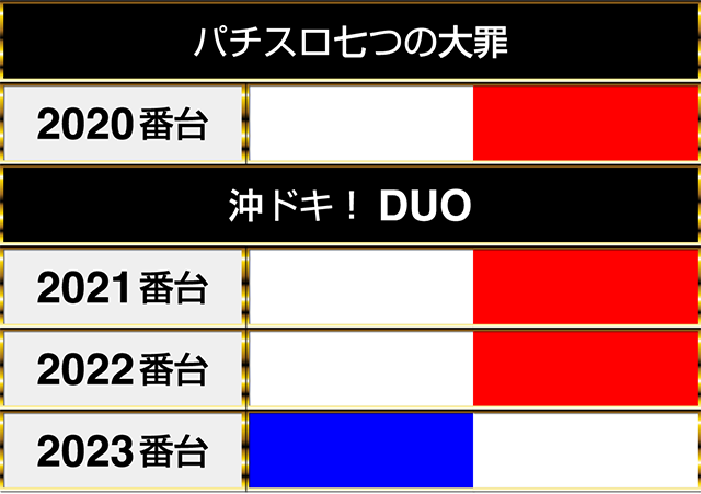 並びで設置された『パチスロ七つの大罪』と『沖ドキ!DUO』でも、プレイヤーたちがパフォーマンスを披露!