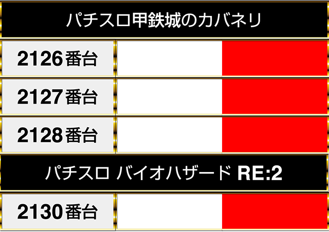 『パチスロ甲鉄城のカバネリ』の3台は『パチスロ バイオハザード RE:2』の1台と連なってプラスptを記録した。