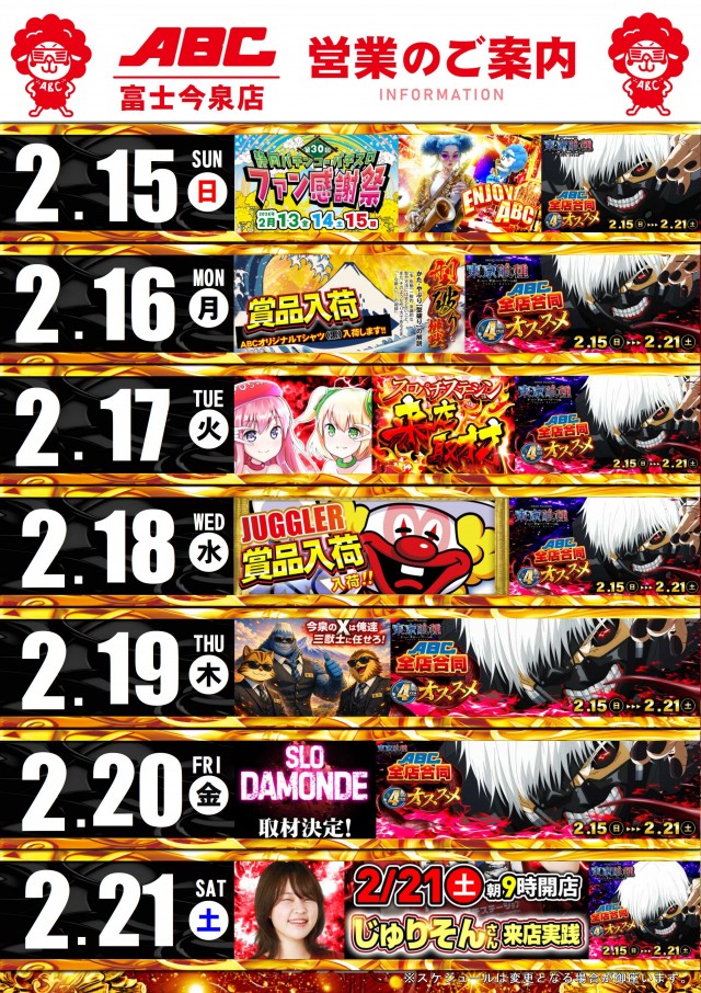 じゅりそんさん来店実践予定★朝の抽選時間8:15から開始。