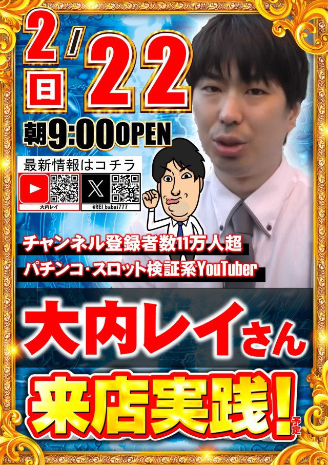 ☆大内レイさん実践来店予定☆