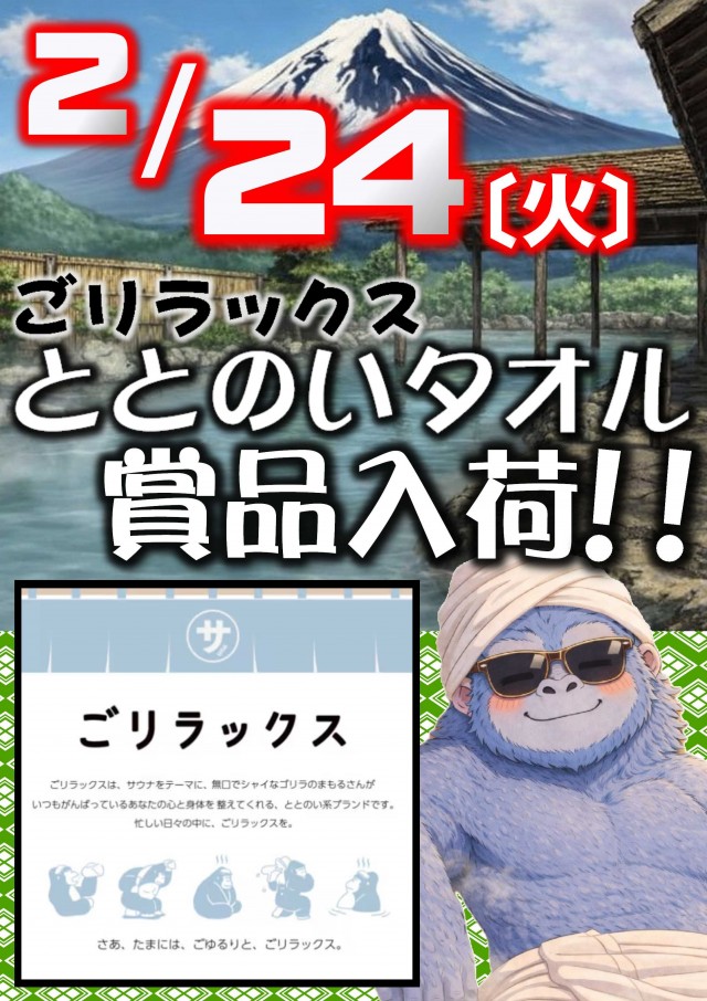 ととのいタオル賞品入荷☆