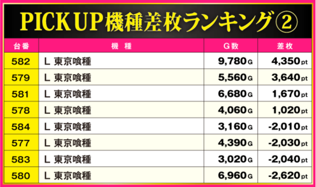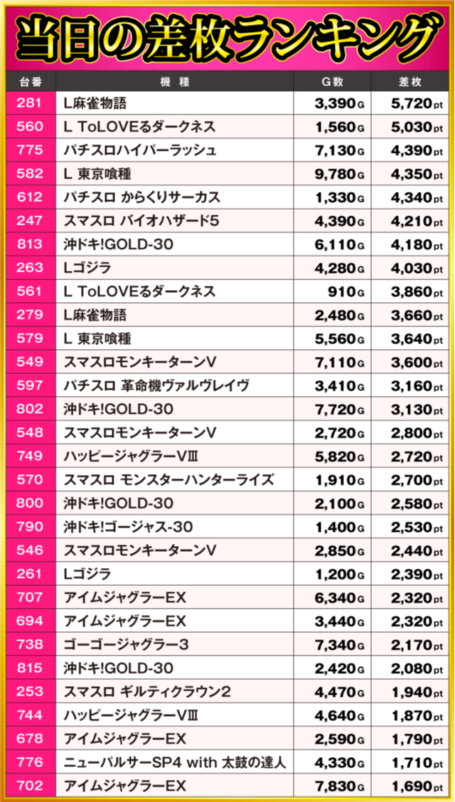 当日の差枚ランキング