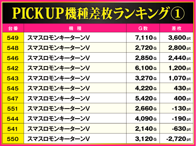 ※差枚pt順に掲載しています。