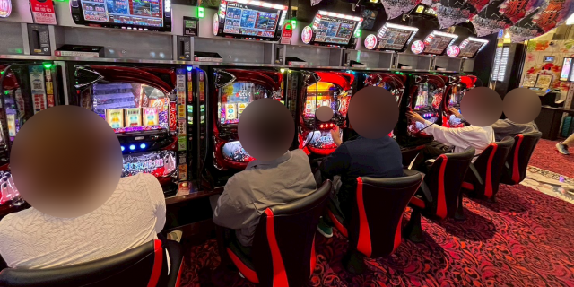 次にPICK UP機種の状況を見ていこう。『スマスロモンキーターンV』は549番台の+3,600ptをはじめ全11台中7台がプラス差枚に。そして、差枚上位にランクインした『L 東京喰種』と『L麻雀物語』も半数の台がプラス差枚で実戦を終えているだけに、それぞれのシマは常に活気とファンの笑顔に溢れていた。
