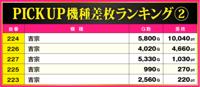 ※差枚pt順に掲載しています。