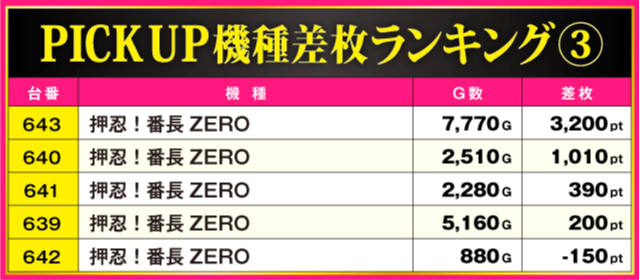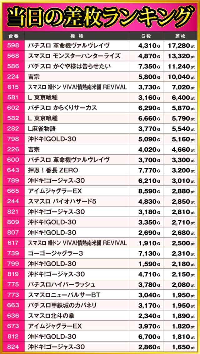 当日の差枚ランキング