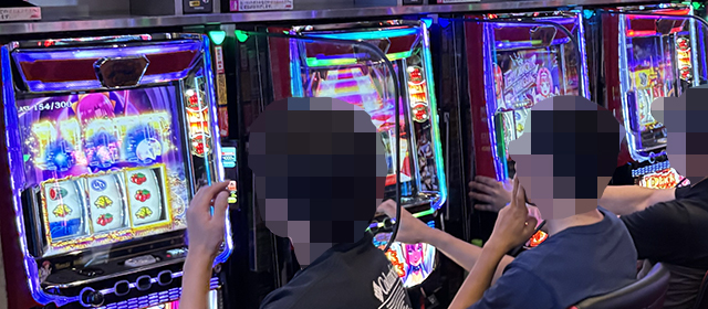 取材時、スロットコーナーをチェックするとすでに活況の様子。プレイヤーが夢中でレバーを叩く姿が散見された。それではさっそく、この日のデータを見ていくとしよう。