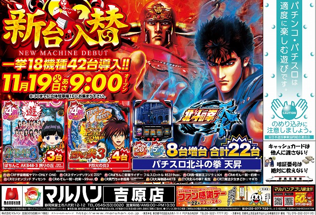 明日11月19日(火)新台入替初日!朝9時オープン!