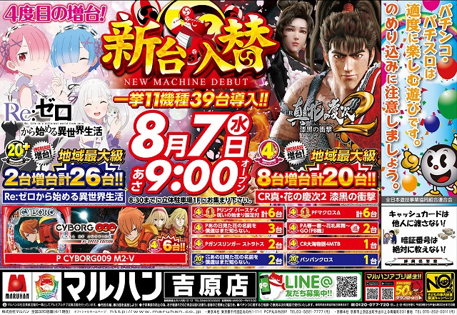 明日8/7(水)新台入替初日!朝9時オープン