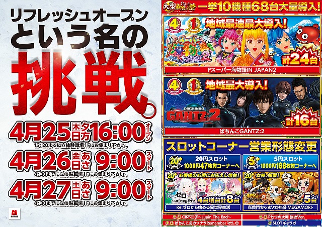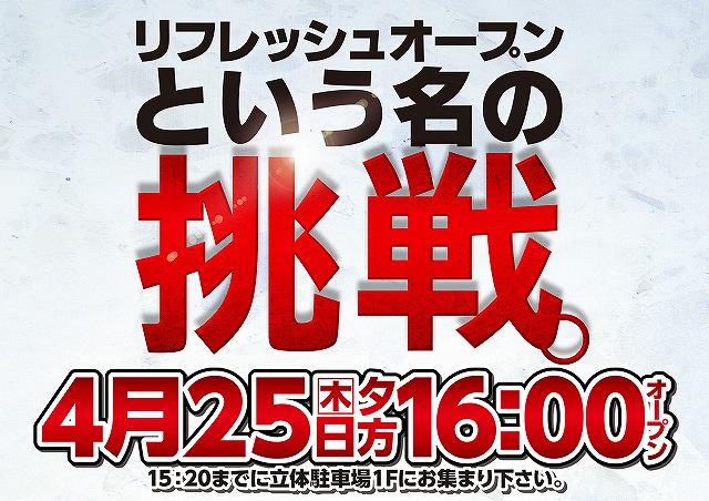 4/26(金)リフレッシュオープン2日目!朝9時スタート!