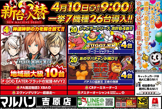 明日4/10(水)新台入替!ゴットイーター地域最大級導入!