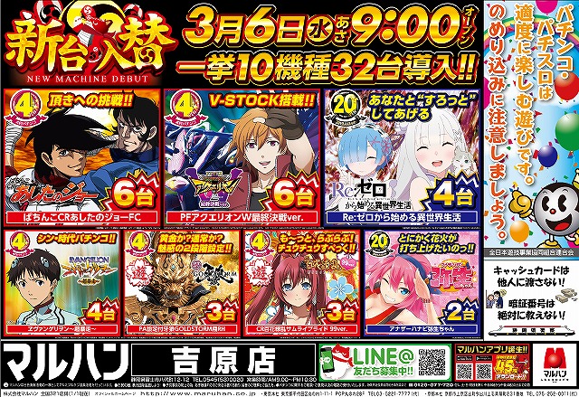 明日3/6(水)新台入替!アクエリオン・Reゼロその他導入済