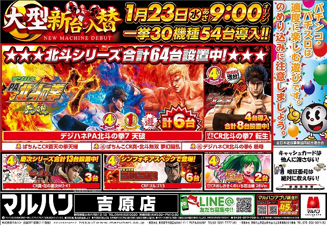 明日1/23(水)大型新台入替!一挙30機種54台導入!