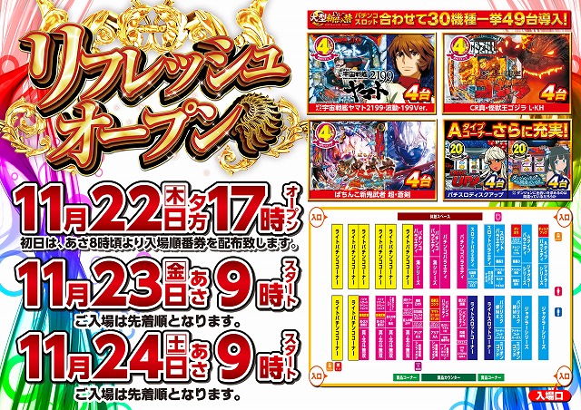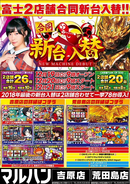 12/19(水)吉原・荒田島合同新台入替!朝9時オープン!
