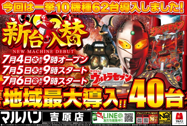 7/4(水)新台入替初日!ウルトラセブン地域最大40台導入!
