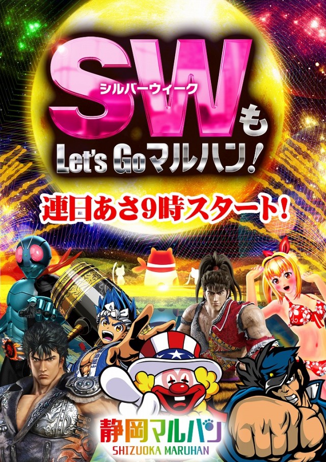 明日9月26日(土)あさ9時営業開始!!週末もマルハン!!