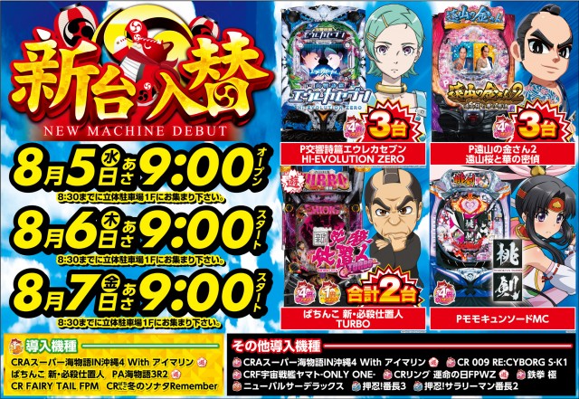 8月9日(日)週末もマルハン!あさ9時営業開始!!