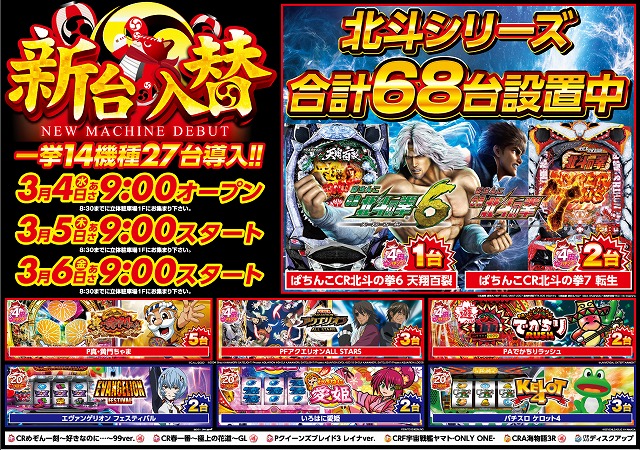 明日3月4日(水)新台入替初日!朝9時オープン!