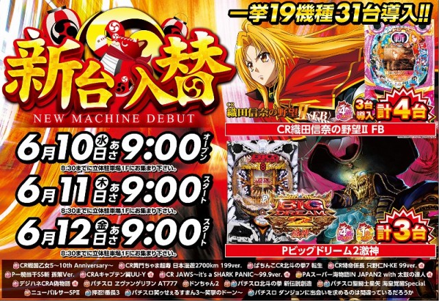明日6/10(水)新台入替初日!朝9時オープン!