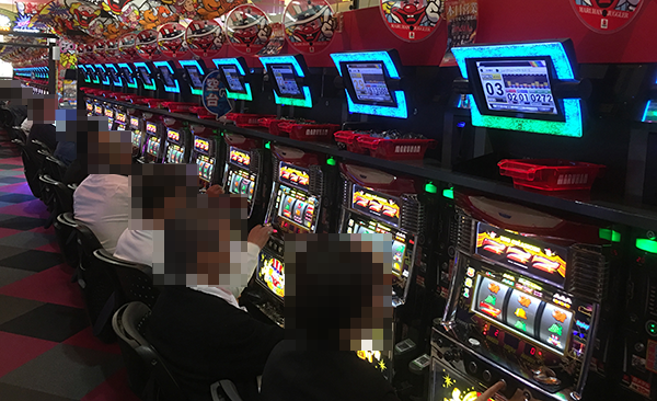 「沖ドキ!-30」や「ミリオンゴッド-神々の凱旋-」なども活気づいており、シマ内の雰囲気は明るい。